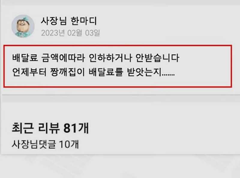 배달비 안받는 중국집 사장님의 한마디